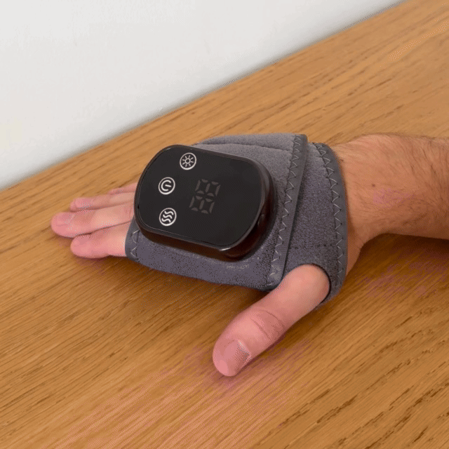 Denne »tredobbelte metode« kombinerer beroligende varme, blid vibration og støttende kompression, som hjælper med at øge blodgennemstrømningen og fremme bevægelse i dine led, hvilket bryder den nedadgående spiral, der holder dine hænder fanget i smerte.