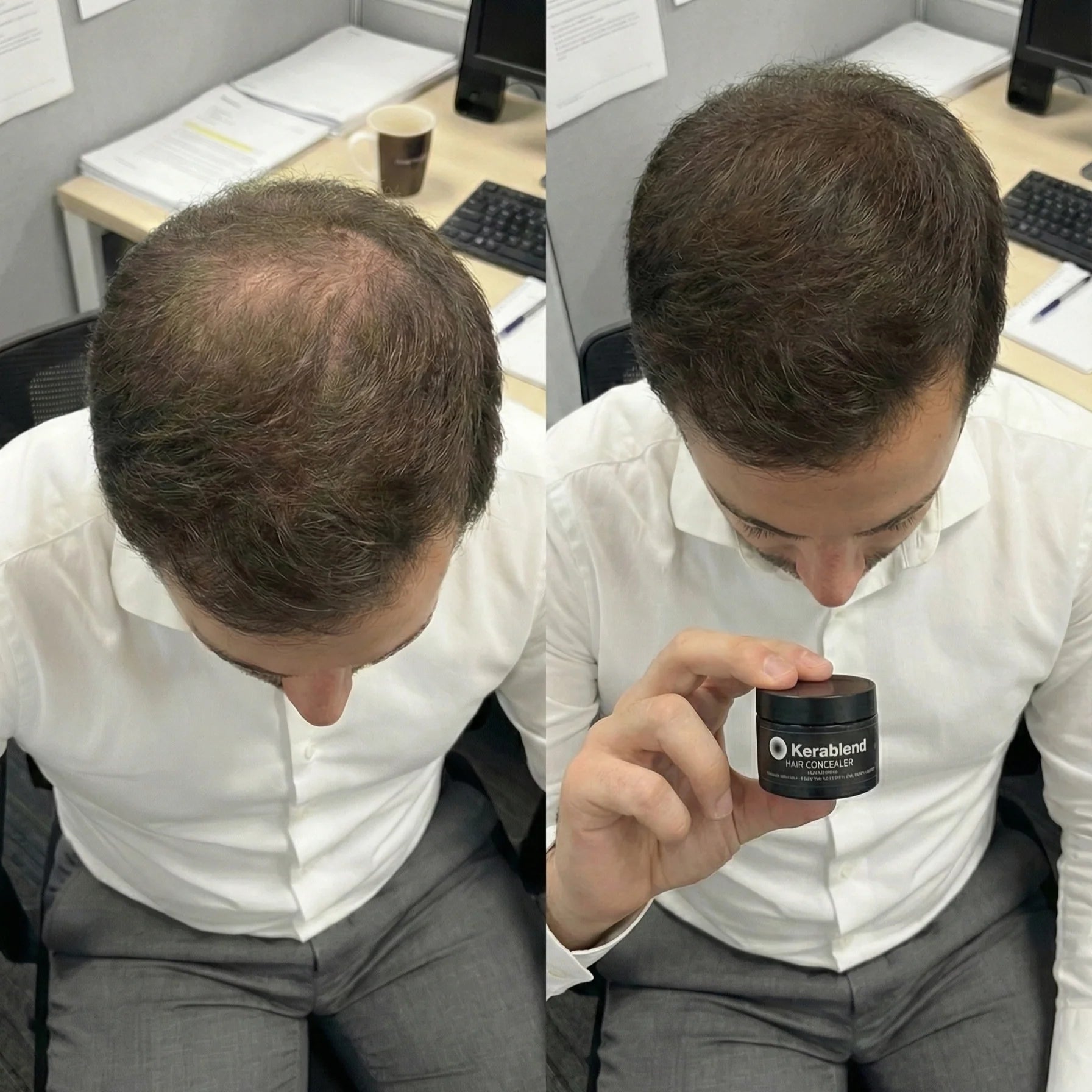 I modsætning til fiberconcealere, der flyder på håret, bruger Kerablend naturlige mineraler, der binder sig til både hår og hovedbund:
