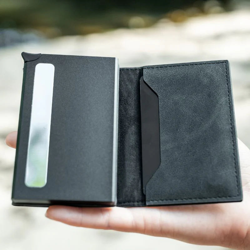 Vores smarte tegnebog gør din hverdag nemmere med sit kompakte format i kreditkortstørrelse, der ikke fylder i lommen. Nyd en stilfuld og praktisk hverdag.