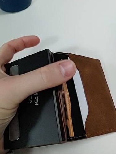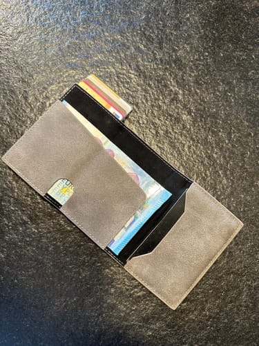 Præcis det, jeg ledte efter: slank, enkel og praktisk. Jeg har 7 kort, lidt kontanter og nogle få mønter uden at den ser tyk ud eller føles tyk. RFID-beskyttelsen giver lidt ekstra ro i sindet, når jeg rejser.
