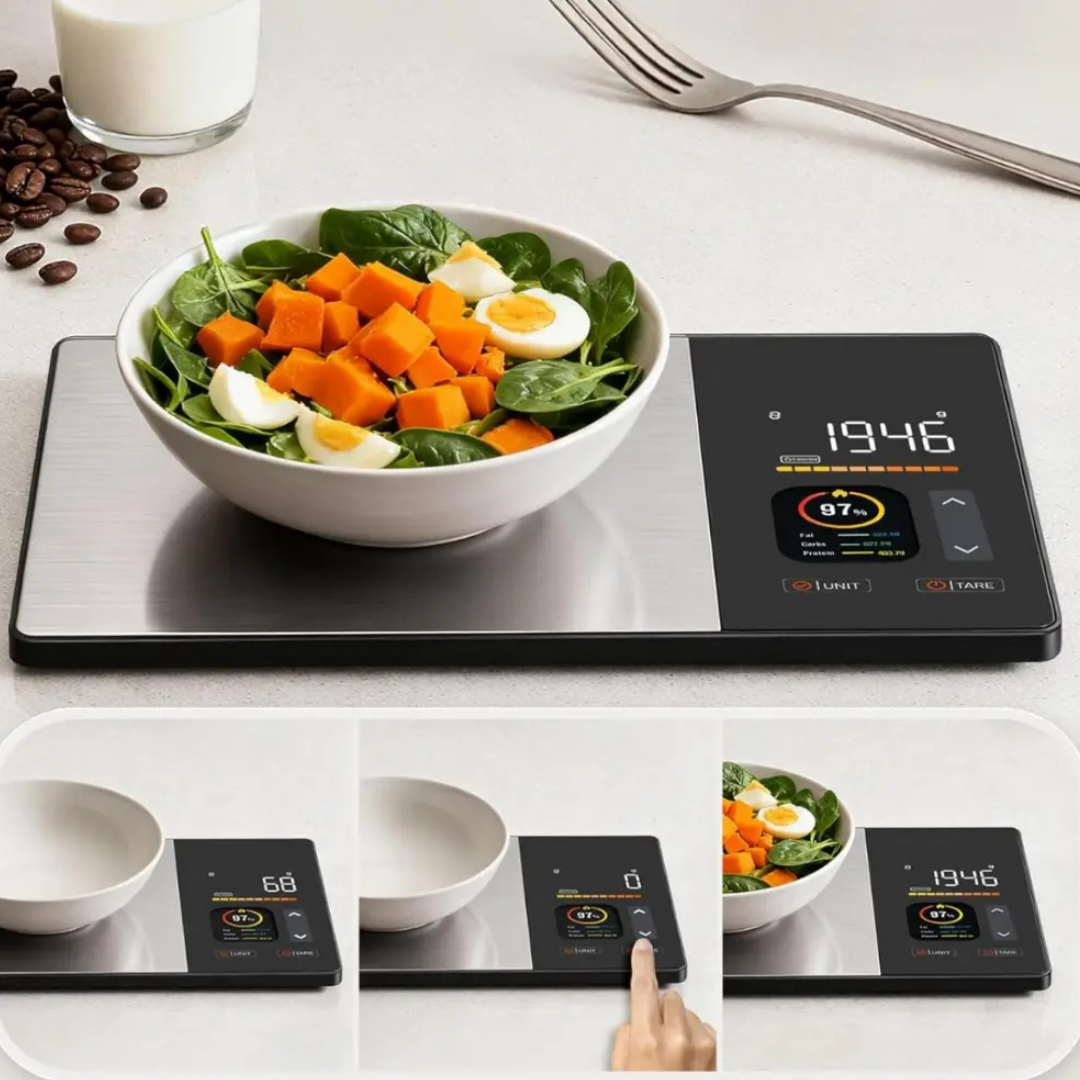 Vælg dine fødevarer direkte på vægten og se straks alle de vigtige næringsværdier.
